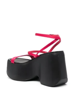 chunky leather wedge sandals from VIC MATIE featuring red, calf leather, open toe, buckle-fastening ankle strap and high wedge heel.