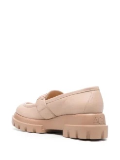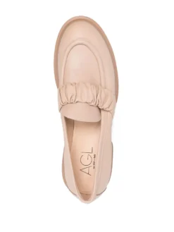 55mm ruched-detail leather loafers from AGL featuring beige, calf leather, ruched detailing, round toe, chunky rubber sole and low heel.