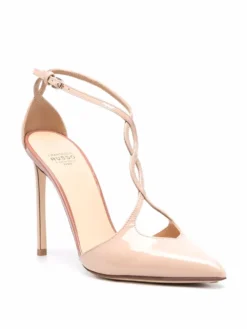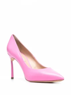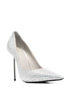 Transparent/silver leather/PVC Holliglass transparent pumps from AMINA MUADDI featuring pointed toe, branded insole, tonal stitching, slingback strap and high sculpted heel.