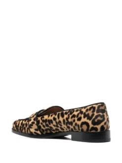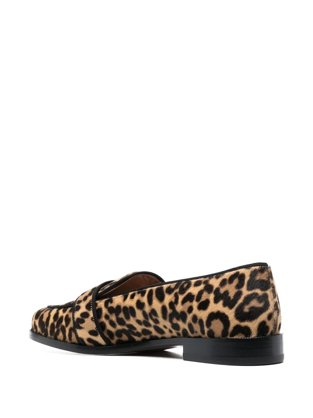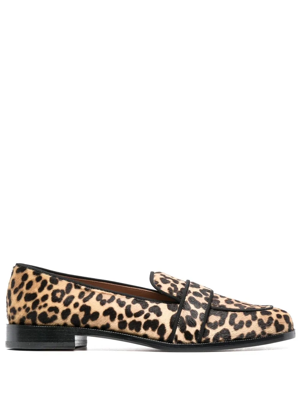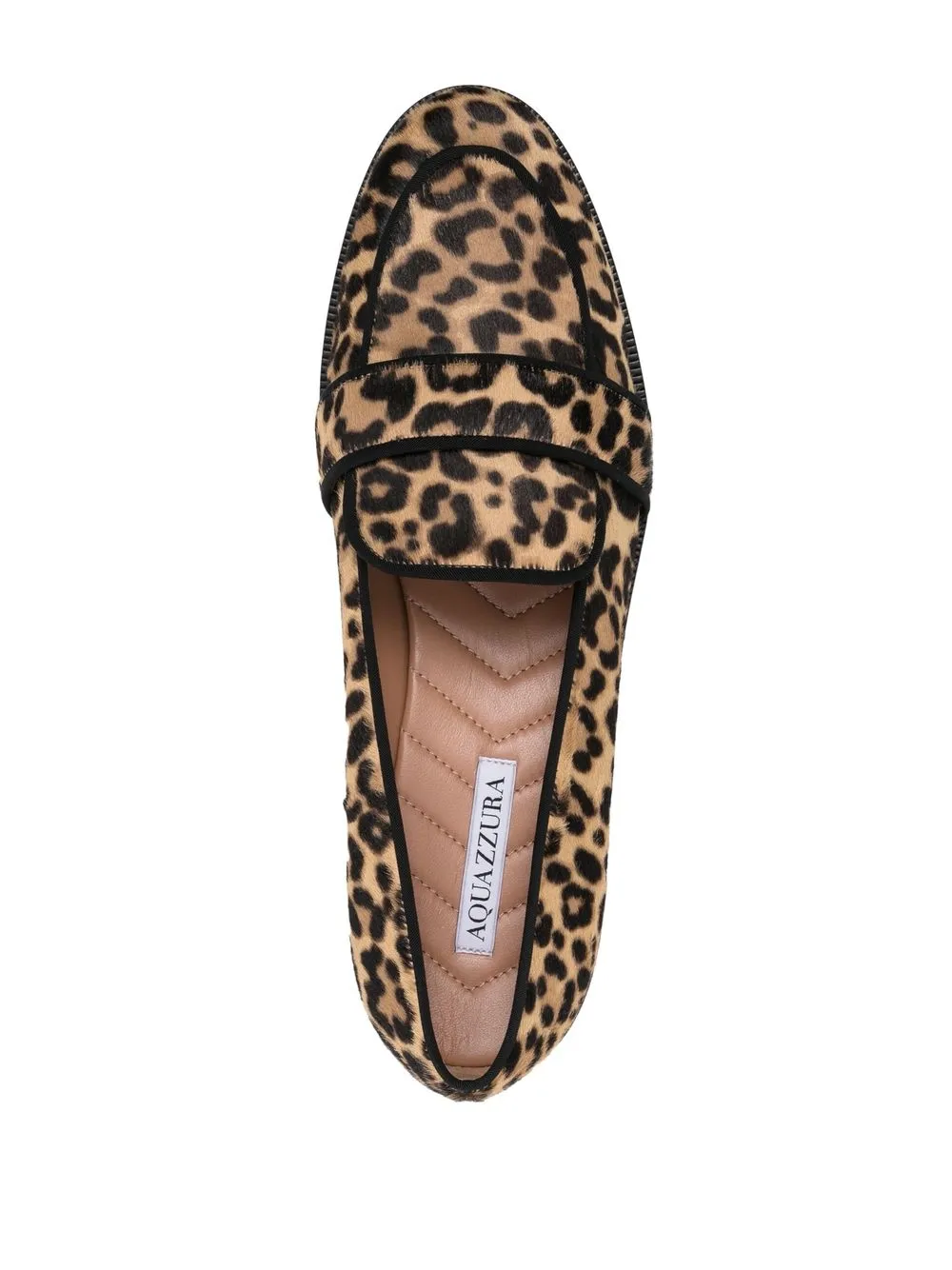 Martin leopard-print loafers from AQUAZZURA featuring black, beige, calf leather, all-over leopard print, almond toe and stacked sole.