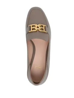 Ellah leather loafers from BALLY featuring grey, leather, slip-on style, gold-tone logo plaque, almond toe, branded leather insole and flat rubber sole.