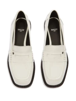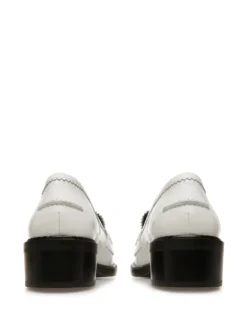 Timeless design is coupled with offbeat detailing in these white leather loafers. Emphasising the reinvented mood, sleek lines are contrasted with jagged edging and polished B-Chain hardware.