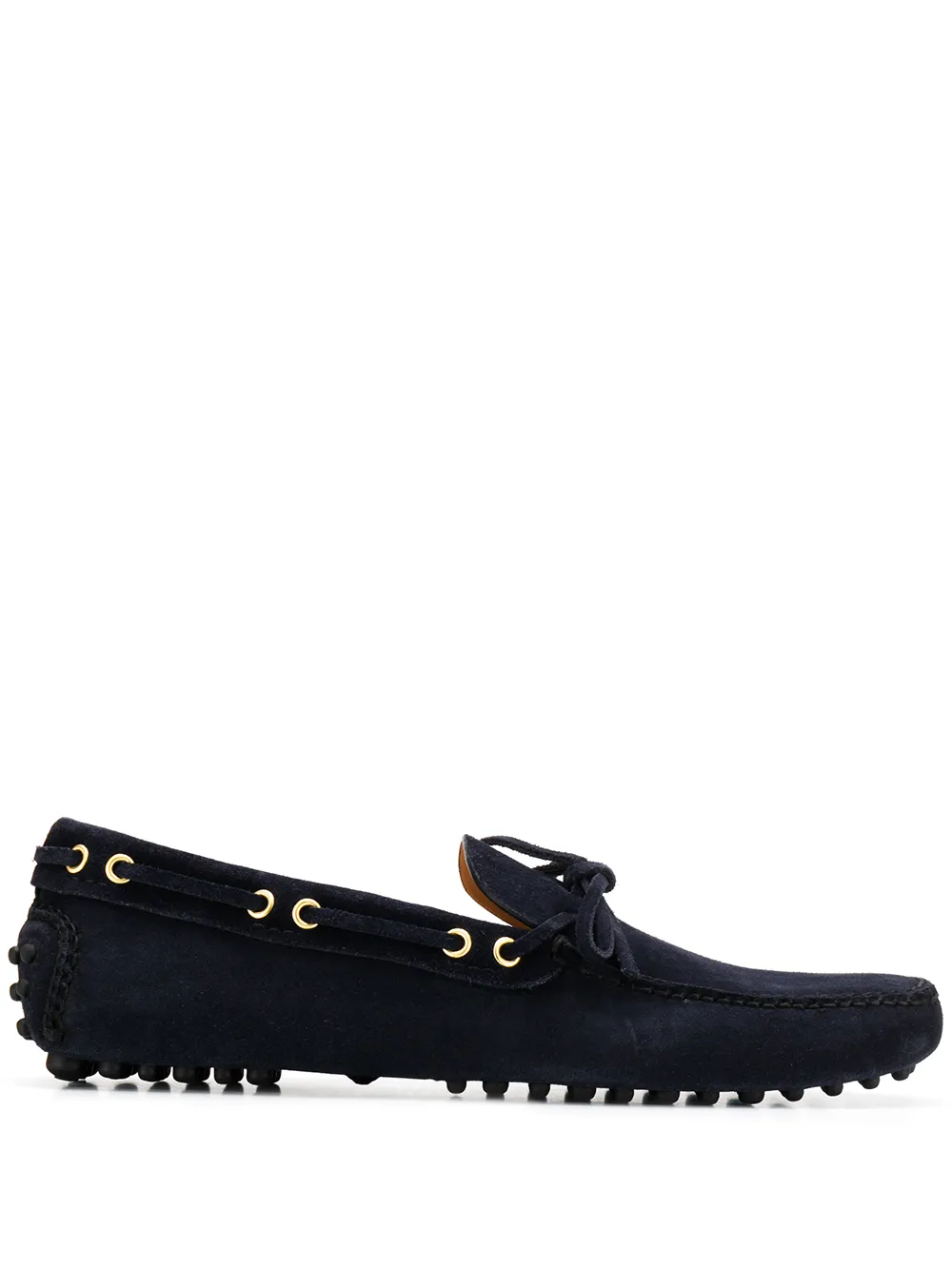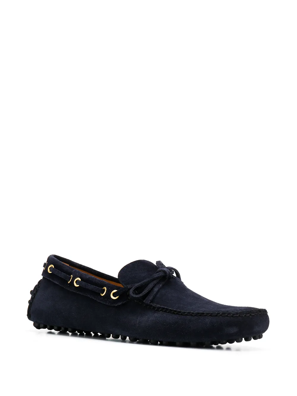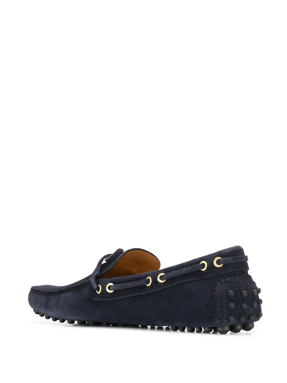 Navy blue suede The Original Driver loafer from Car Shoe featuring a round toe, a tie fastening, a leather insole and a non-slip rubber sole.