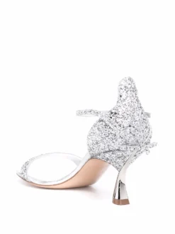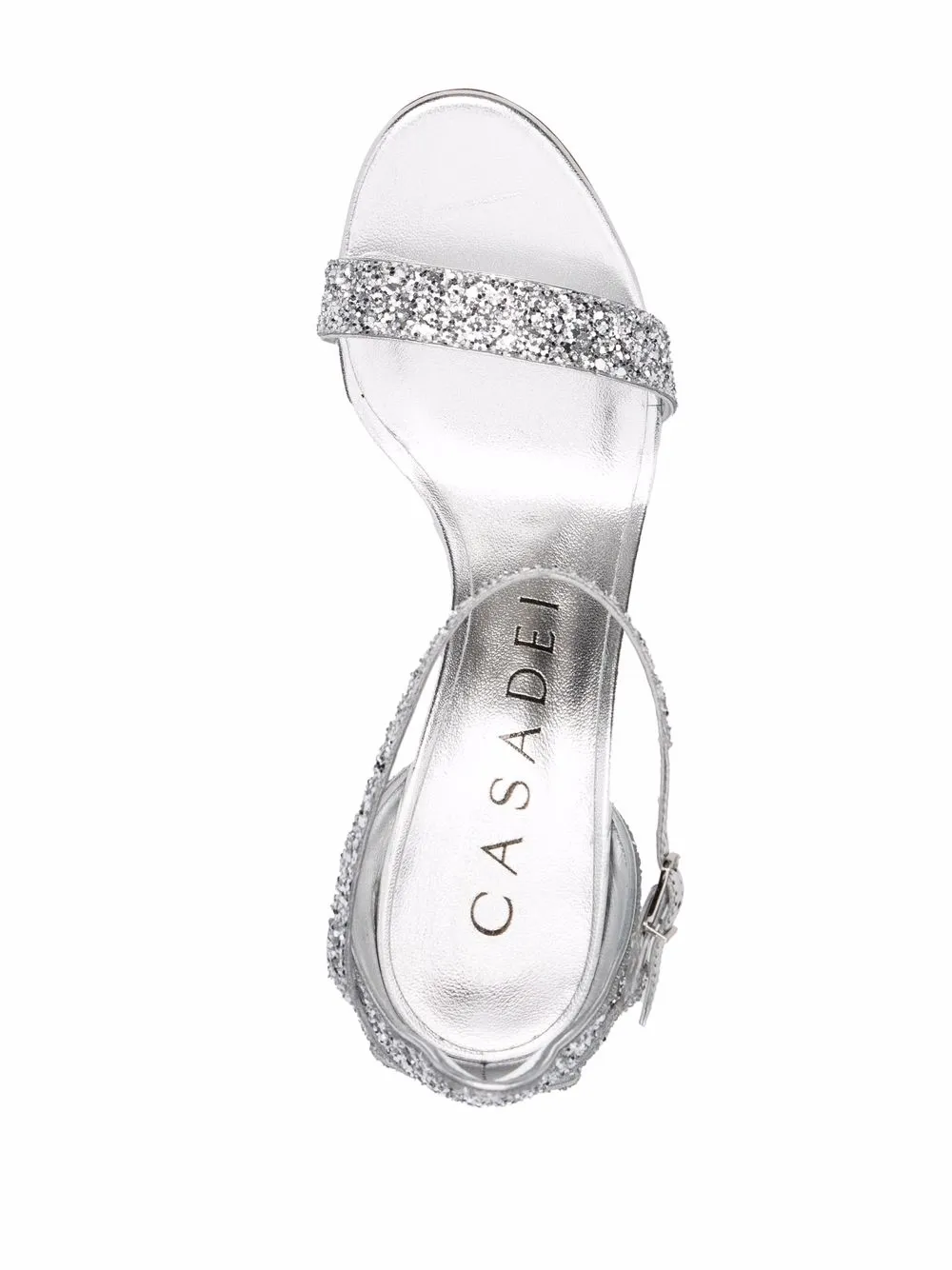 Silver leather K Blade glitter-embellished sandals from CASADEI featuring glitter detailing, open toe, buckle-fastening ankle strap and low heel.