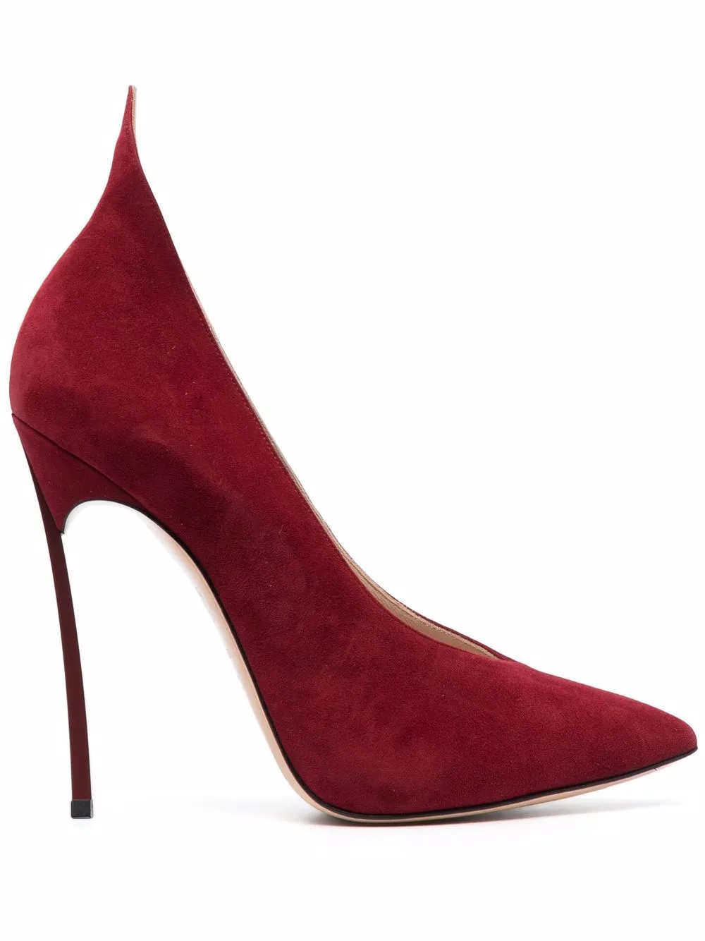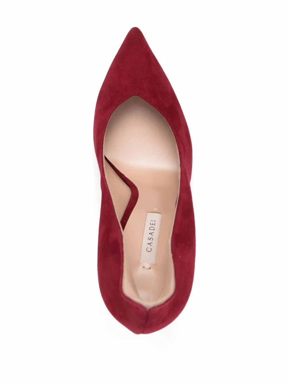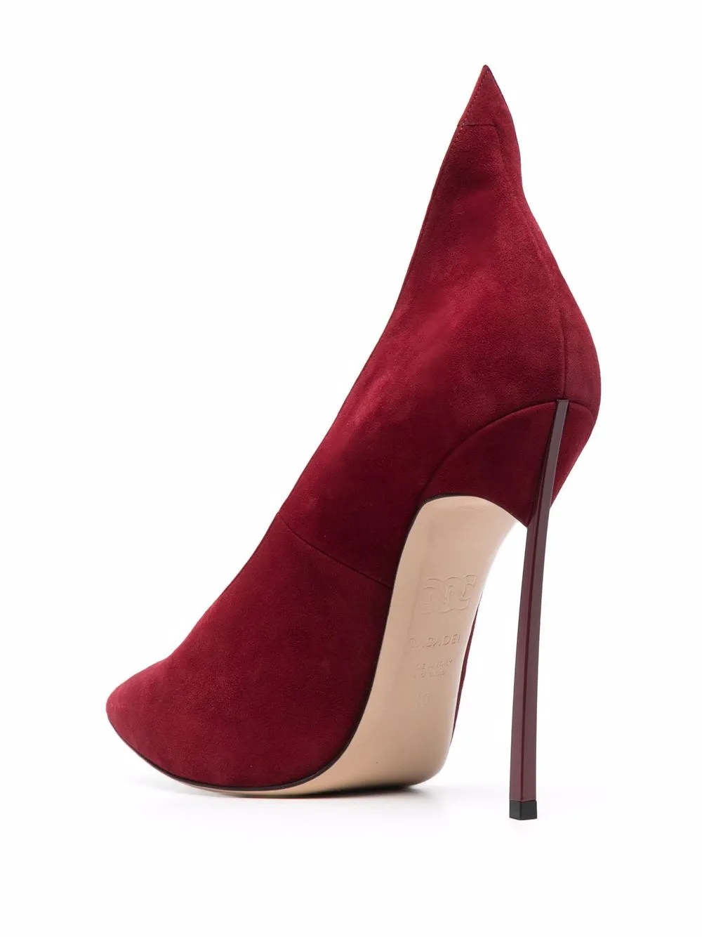 Fenice red suede/leather pointed toe pumps from CASADEI featuring slip-on style, pointed toe, branded insole and high heel.
