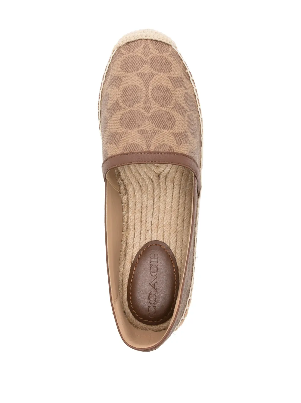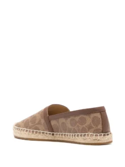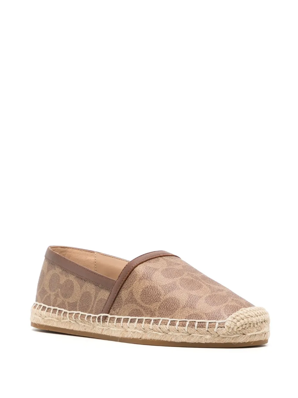Boasting a signature coated canvas and smooth calf leather upper, these tan brown and beige iteration of Coach’s Collins espadrilles boast the house’s logo motif throughout whilst sitting atop a classic braided raffia sole.