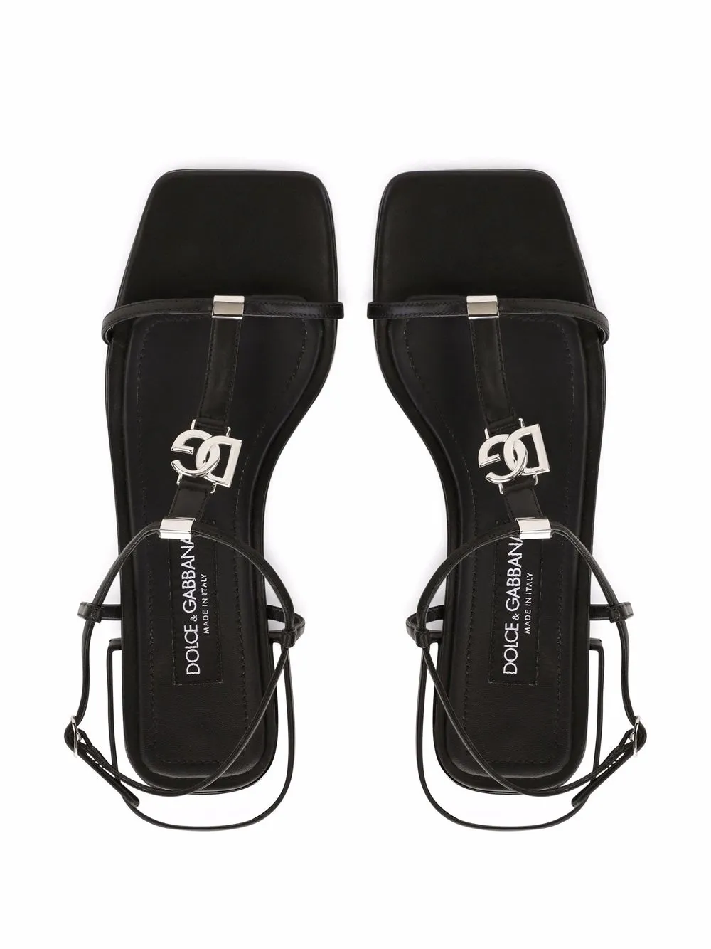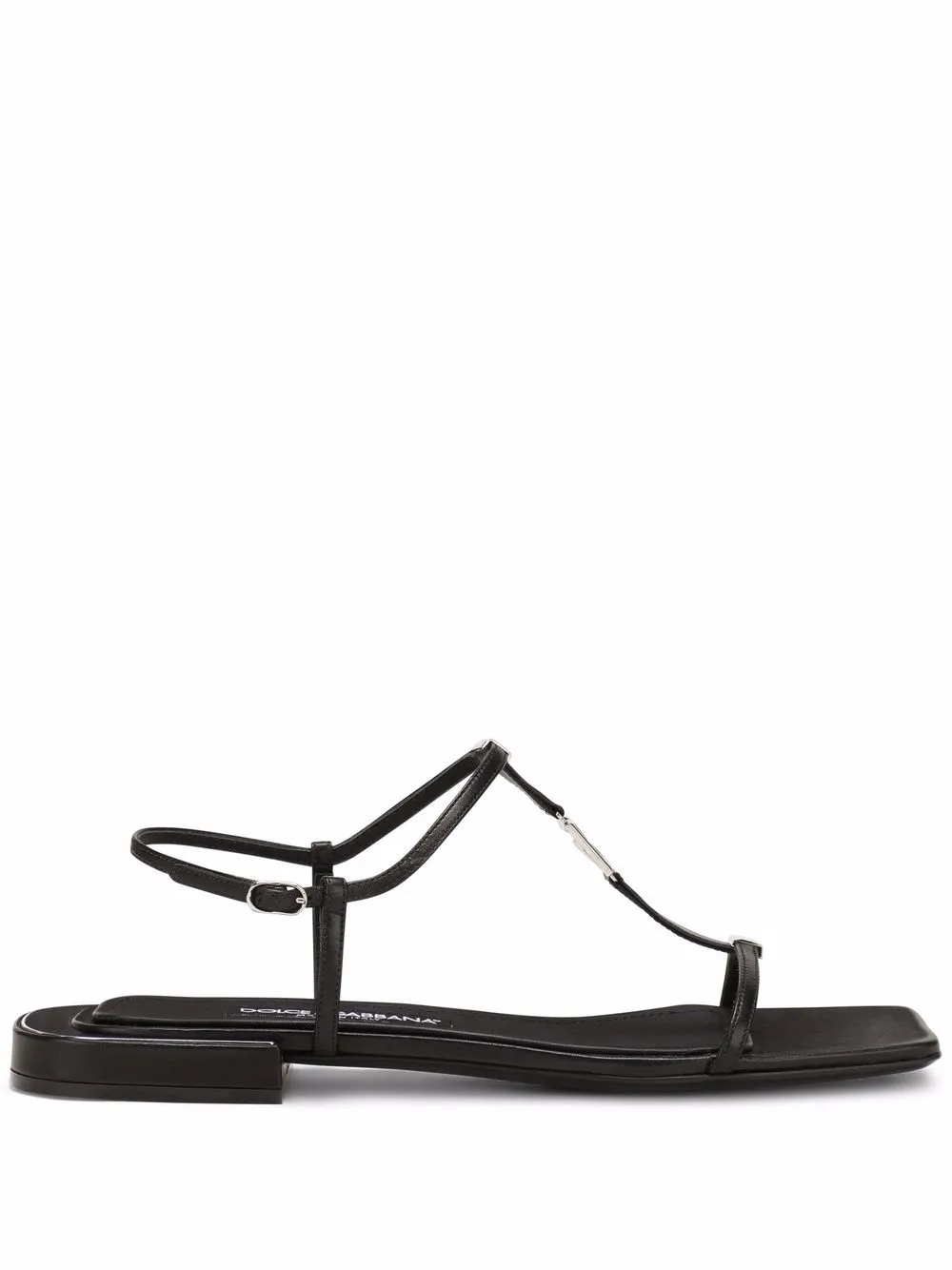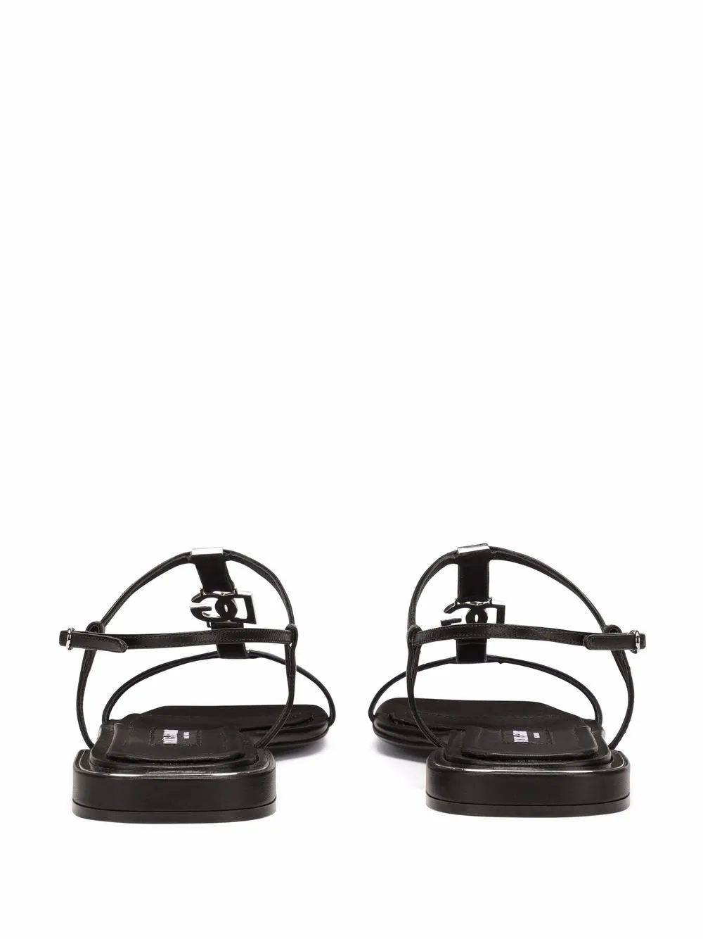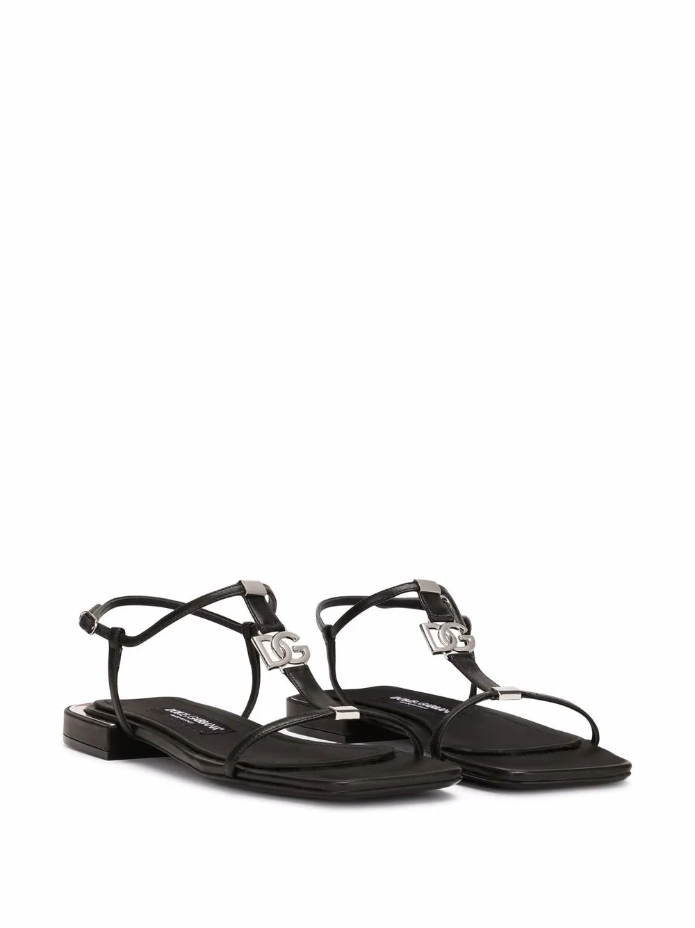 Dolce & Gabbana subtly elevates these flat sandals with silver-tone ‘DG’ logo lettering to each shoe. The pair are crafted from black calf leather and designed with thin, elegant straps.
