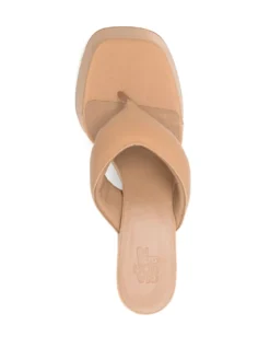 Giaborghini reframes their affection for padded straps in these SS23 sandals. Presented in camel brown, the pair features a double-strap design and is elevated by curvy block heels that echo the soft aesthetic.