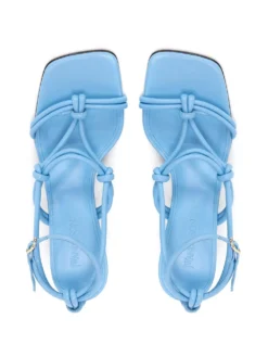 knot-detail ankle-strap sandals from JW Anderson featuring knot detailing, buckle-fastening ankle strap, baby blue, calfskin/lambskin/calf leather, open toe, branded insole and mid-heel.
