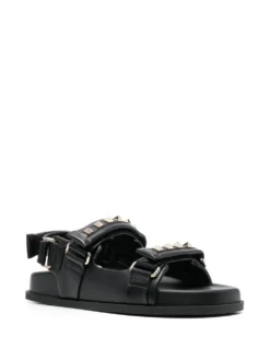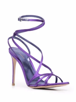 knot-detail ankle-strap sandals from JW Anderson featuring knot detailing, buckle-fastening ankle strap, baby blue, calfskin/lambskin/calf leather, open toe, branded insole and mid-heel.