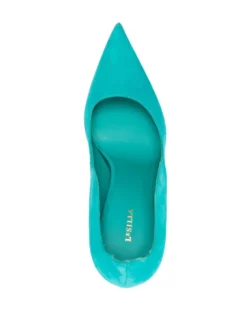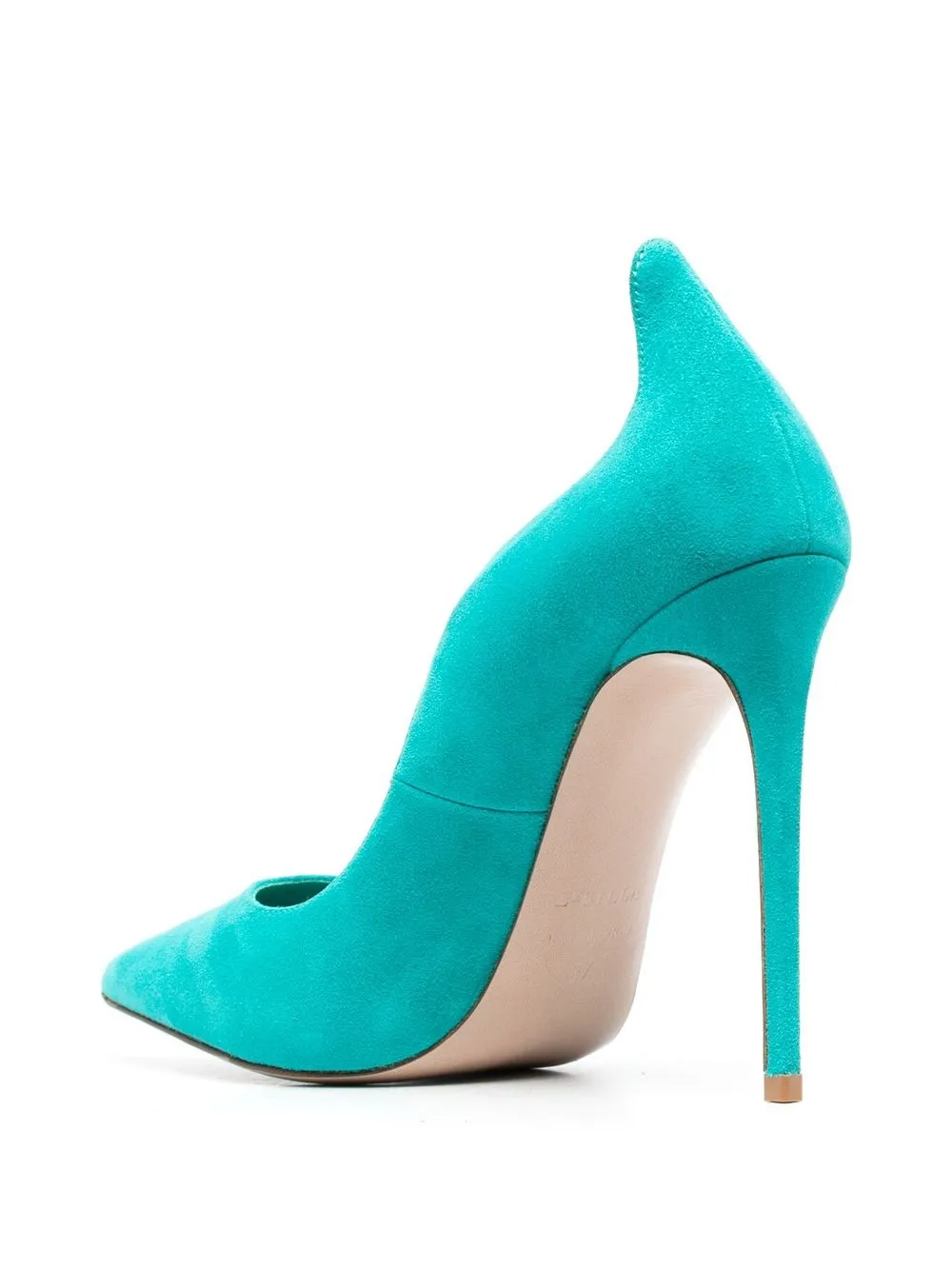 Ivy 110mm suede pumps from LE SILLA featuring aqua blue, calf leather, suede trim, branded leather insole, pointed toe, flat rubber sole and high stiletto heel.