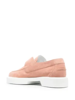 Yatch suede moccasins from LE SILLA featuring peach pink, leather, tonal design, almond toe, branded leather insole and rubber sole.
