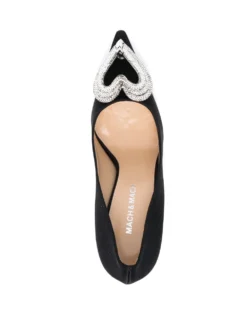 Imagined in black, the Décolleté pumps by MACH & MACH are defined by a crystal-embellished heart detail that speaks to the brand’s romantic side. Made from leather, the pair is covered by satin and come in 100mm stiletto heels.
