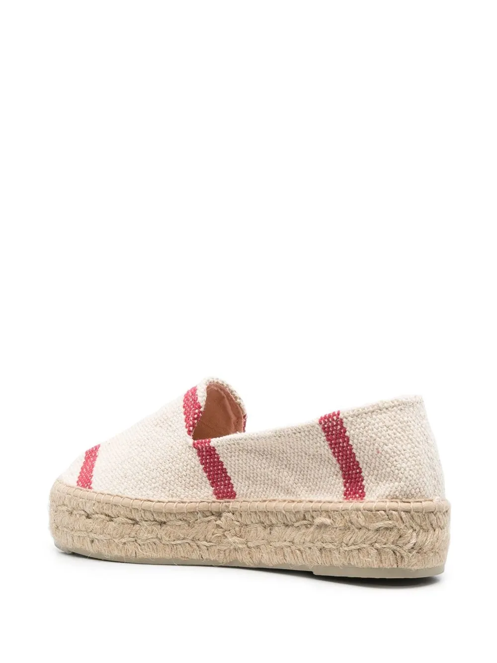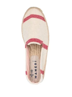 Manebi G striped espadrilles from MANEBI featuring beige, clay red, cotton, round toe, braided raffia sole and stripe print.