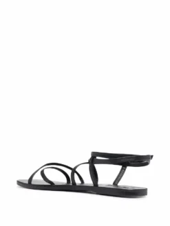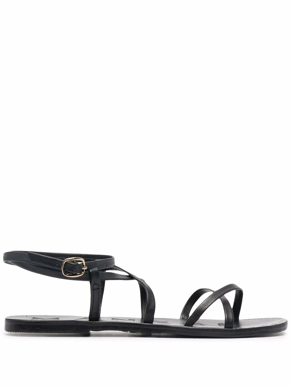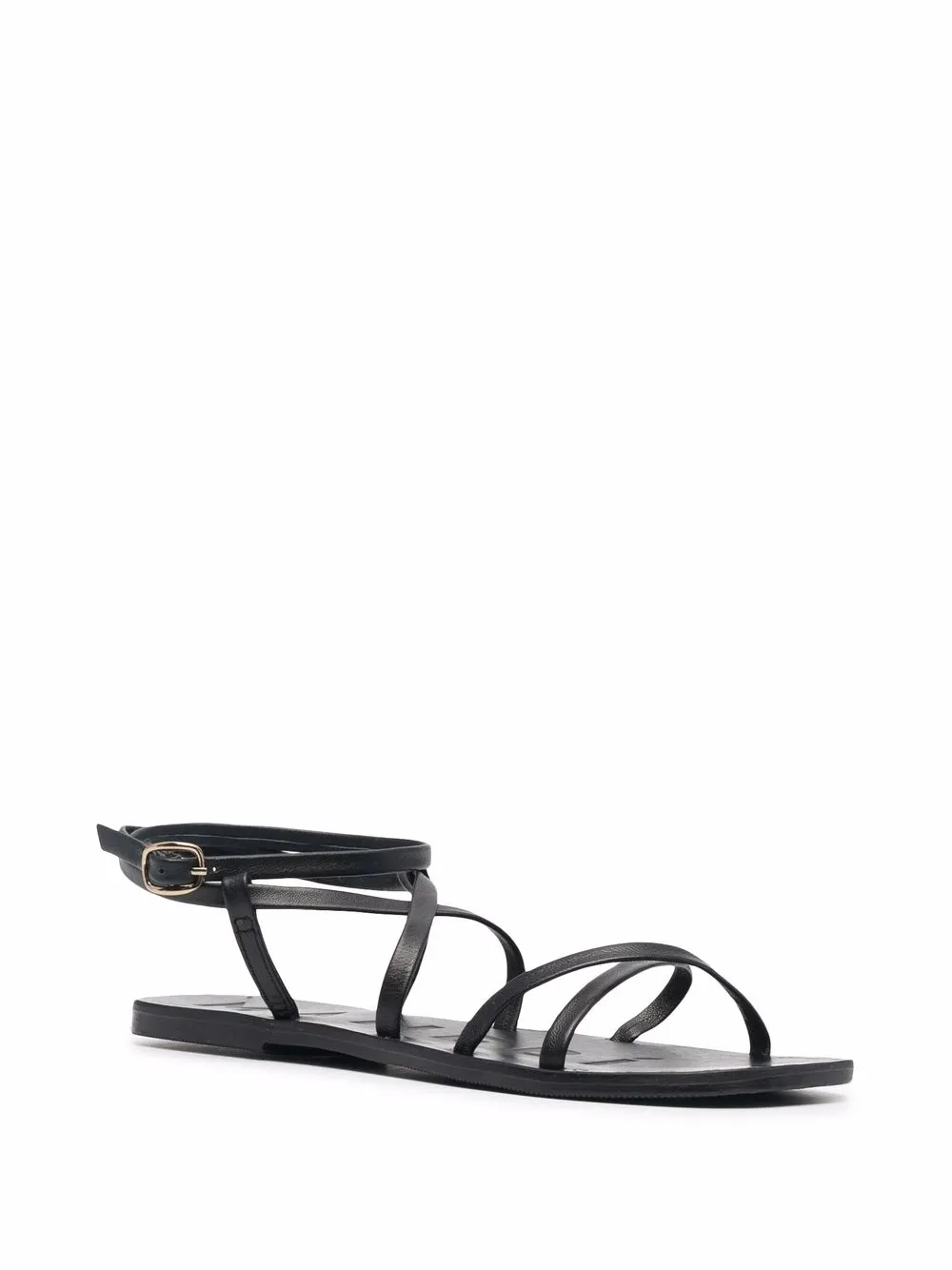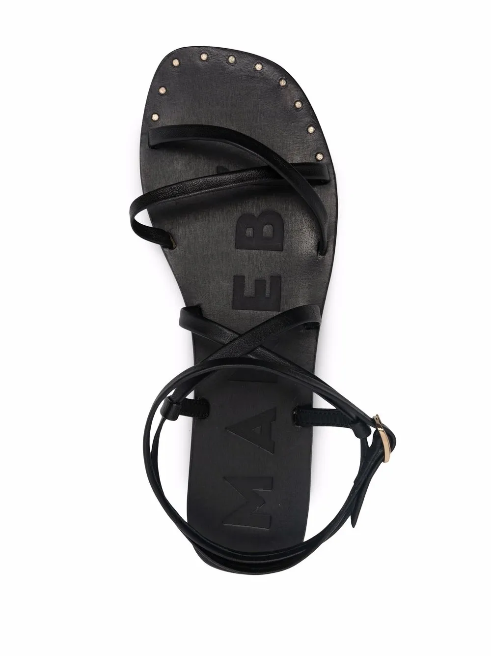 Jet-black leather open-toe leather sandals from MANEBI featuring stud detail, open toe, branded insole and flat rubber sole.