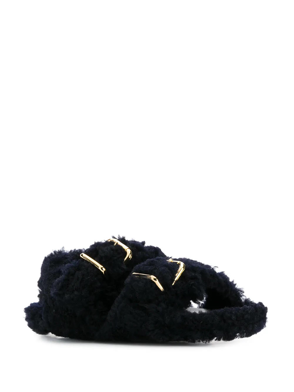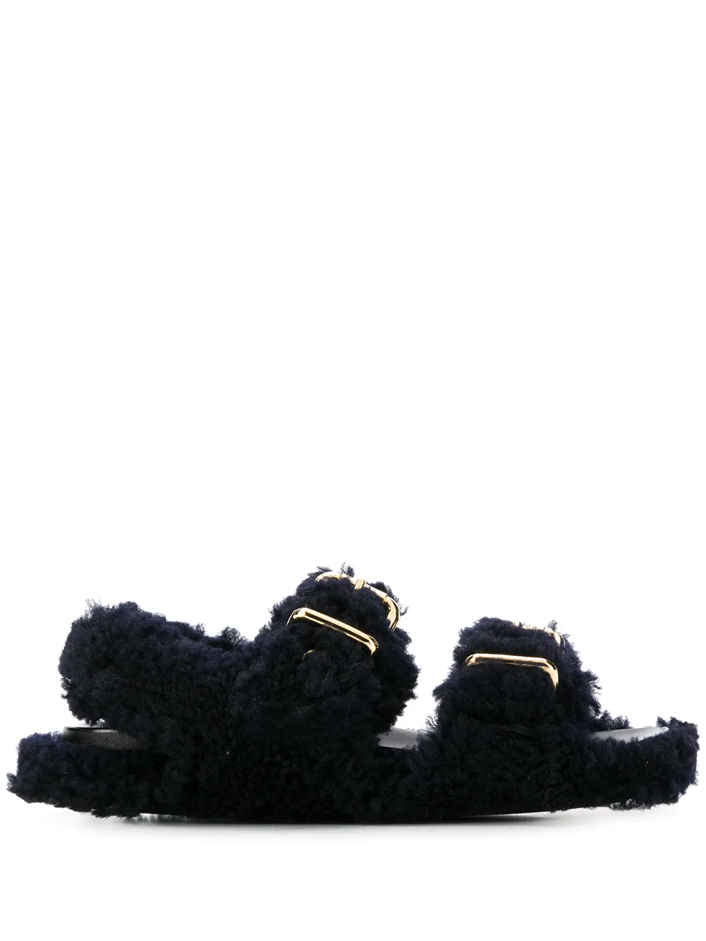 You never know when it may get a bit chilly, so opt for these shearling sandals from Marni – you know, just in case. Covered in soft shearling, these flat sandals are secured by a gold-tone buckle fastening. A trusty option – come rain or shine.
