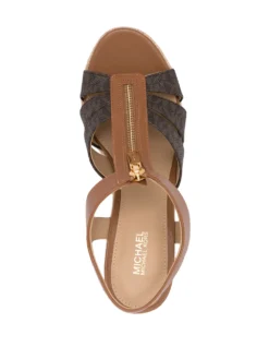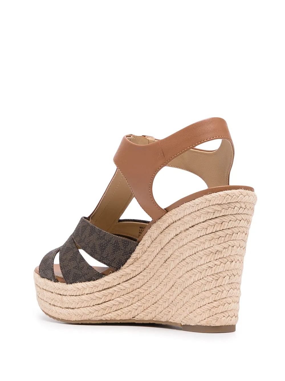 Acorn-brown leather-blend Berkley wedge espadrilles from MICHAEL KORS featuring gold-tone hardware, mid wedge heel, open toe and branded insole.