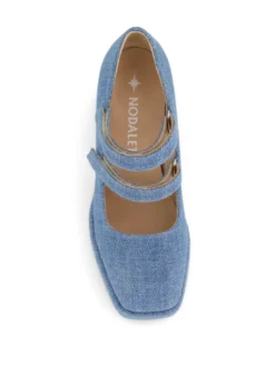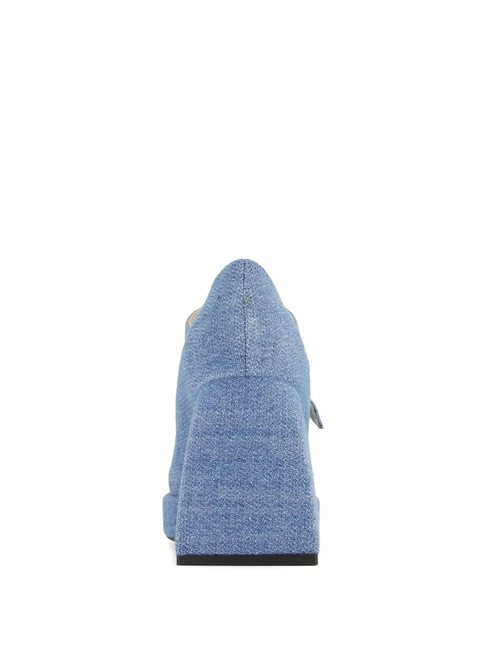 NODALETO describes the Bulla Babies pumps as an ‘anthem to childhood and adolescence’. Crafted from blue denim, this pair boasts two Mary Jane touch straps and sits atop an exaggerated block heel.