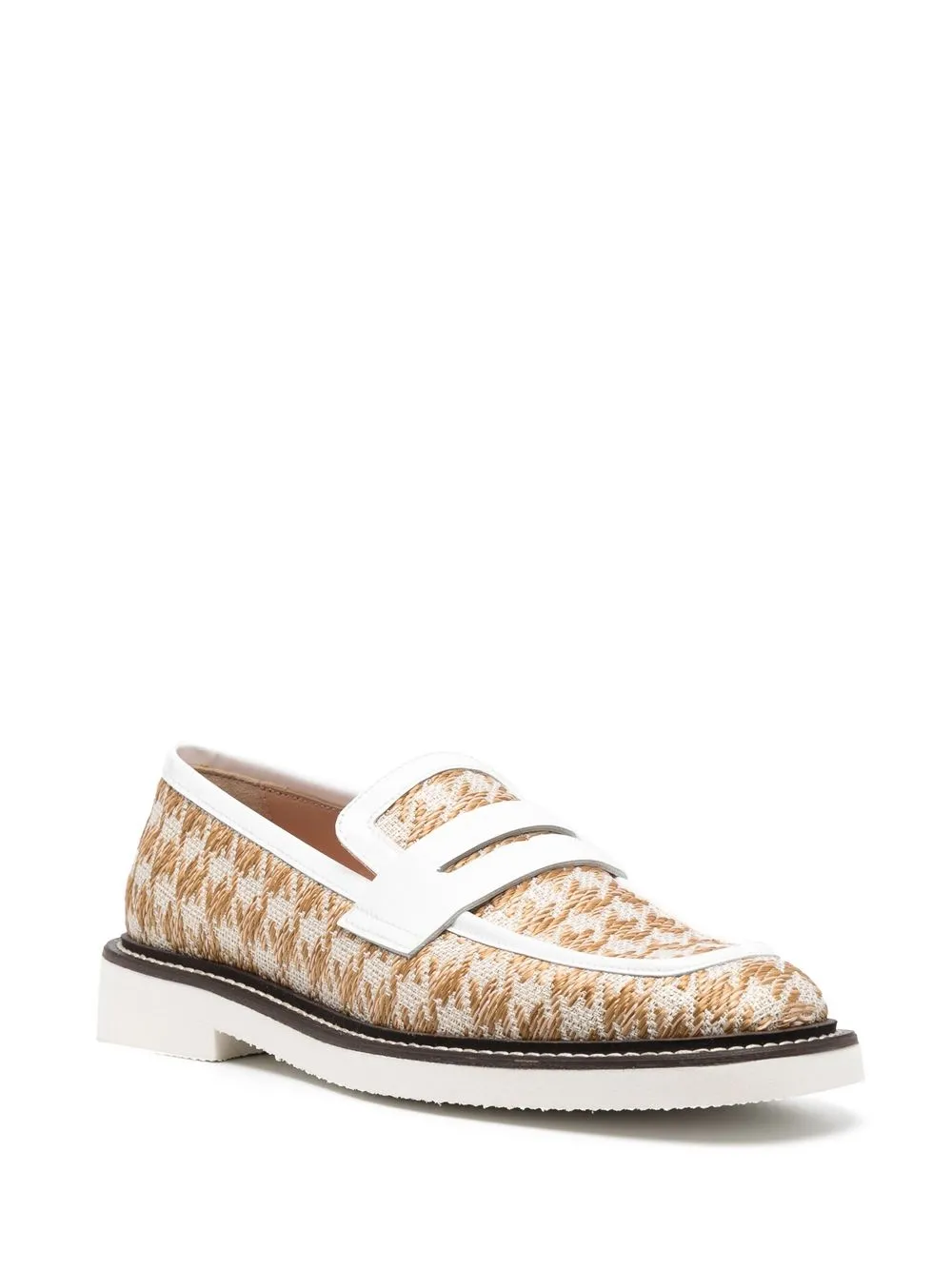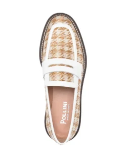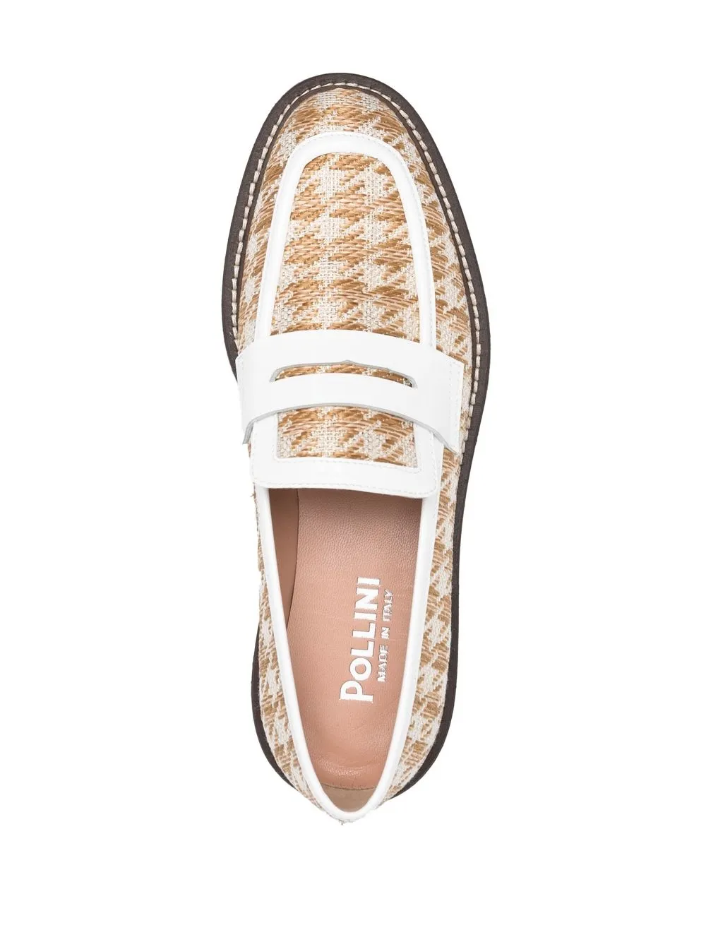 houndstooth-pattern print loafers from POLLINI featuring brown/white, calf leather, slip-on style, houndstooth pattern print, round toe, branded insole and flat sole.