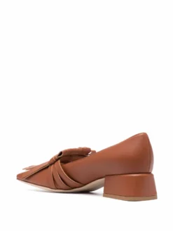 Brown leather fringe-embellished loafers from RODO featuring fringe detailing, square toe, branded insole, slip-on style and low block heel.