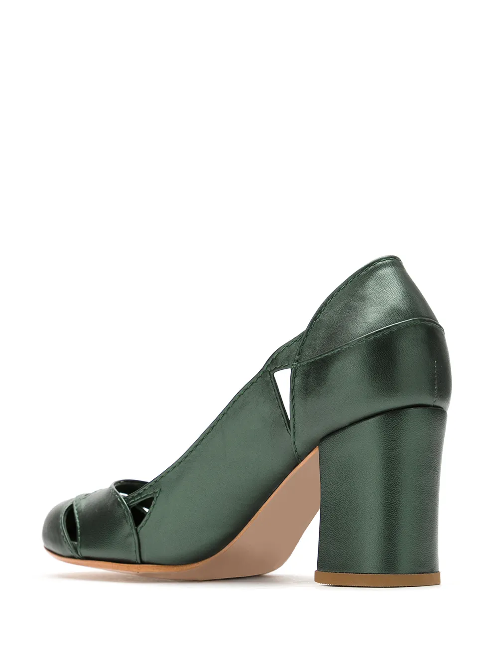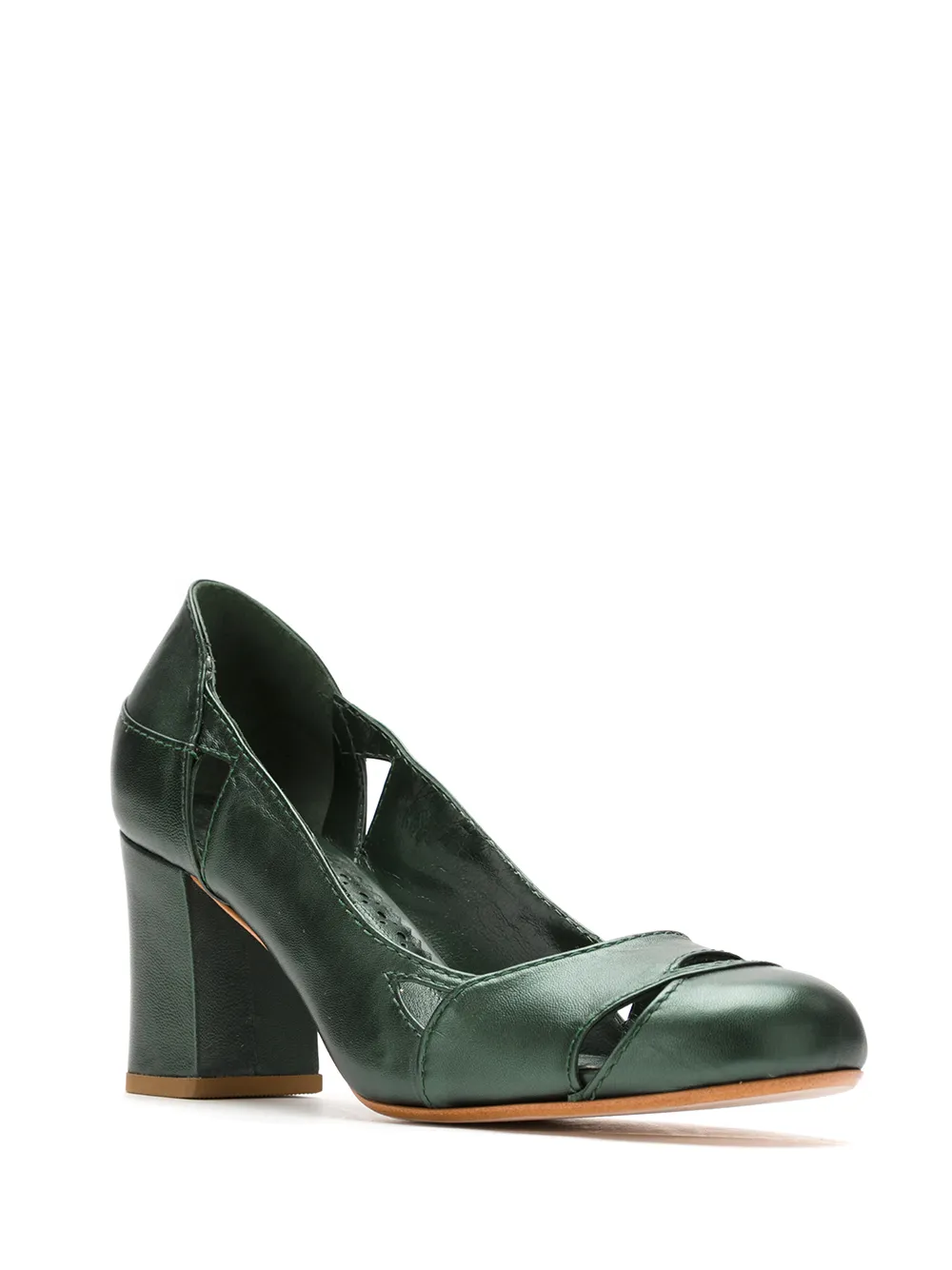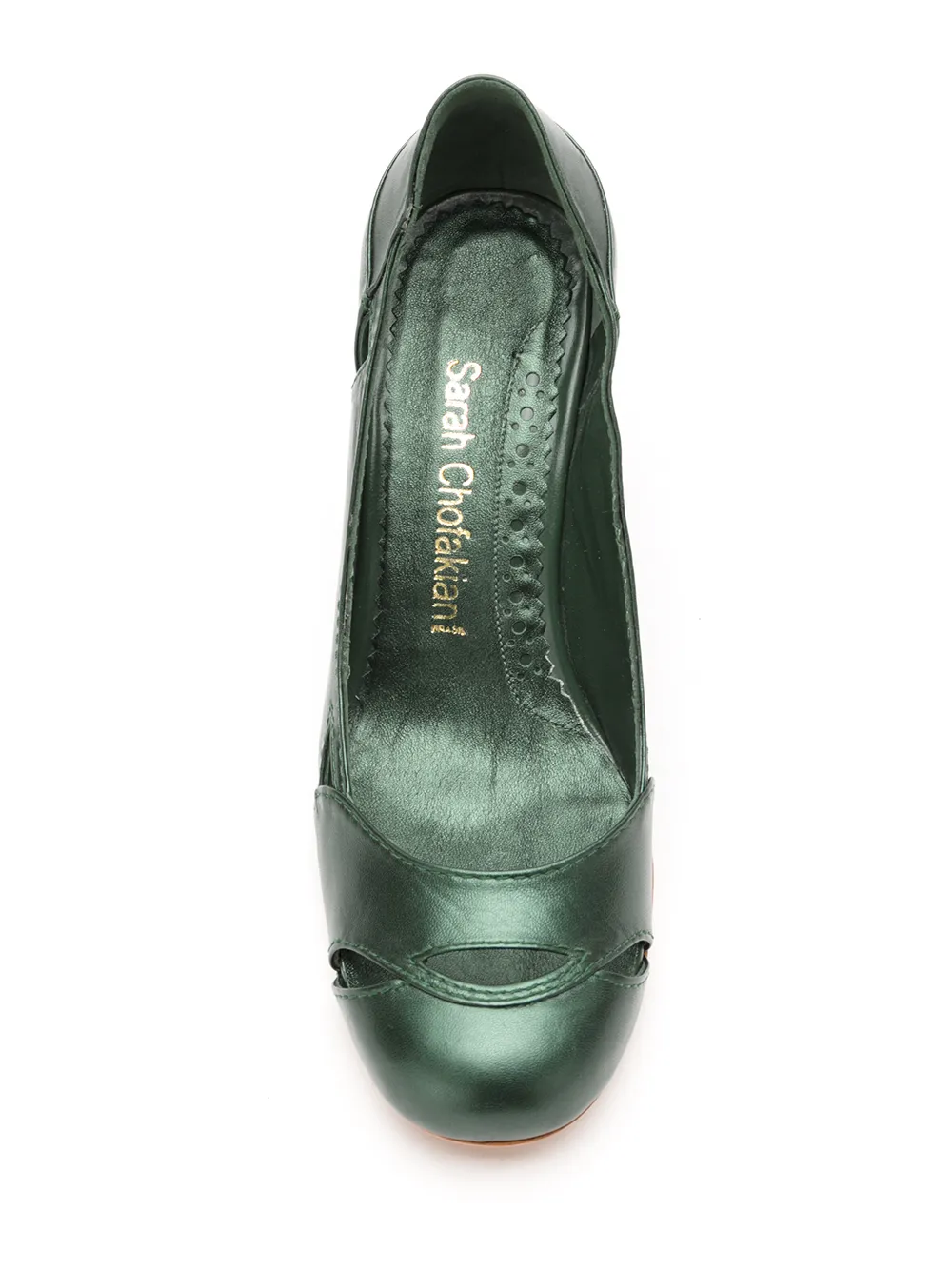 Green Bruxelas leather pumps from Sarah Chofakian featuring a round toe, cut out details and a high block heel.