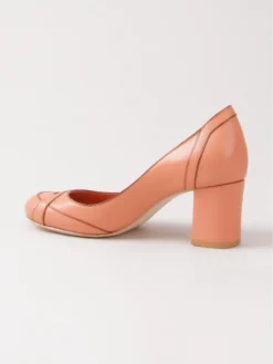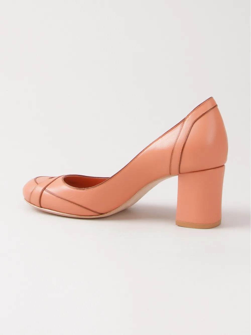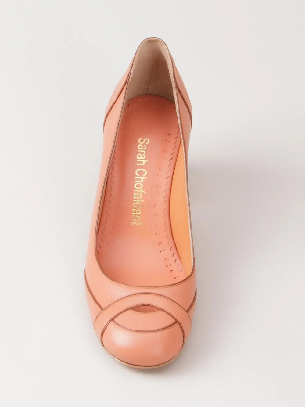 Orange leather mid-heel pumps from Sarah Chofakian.