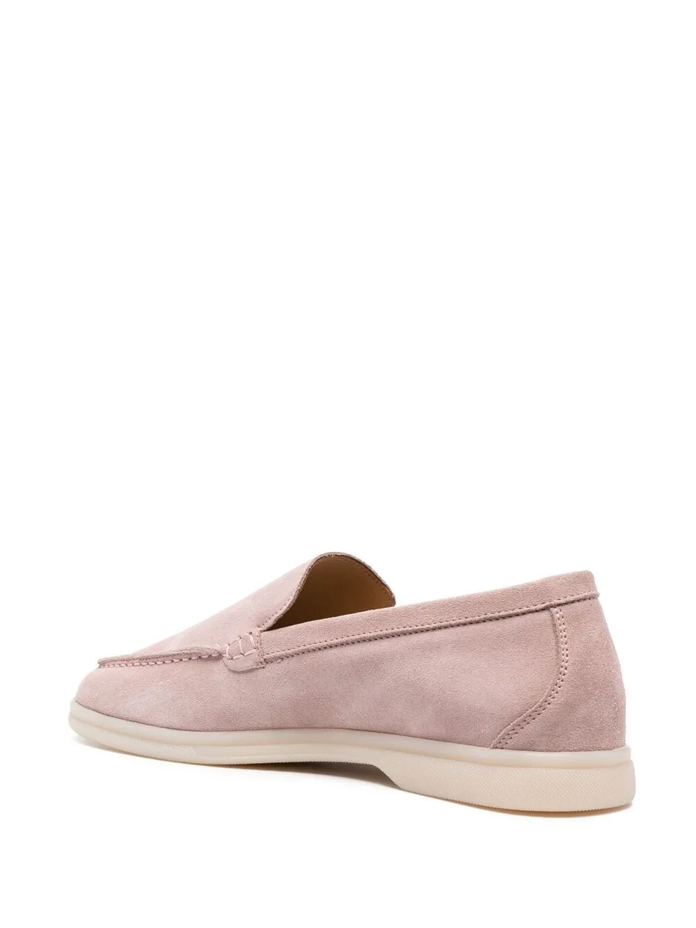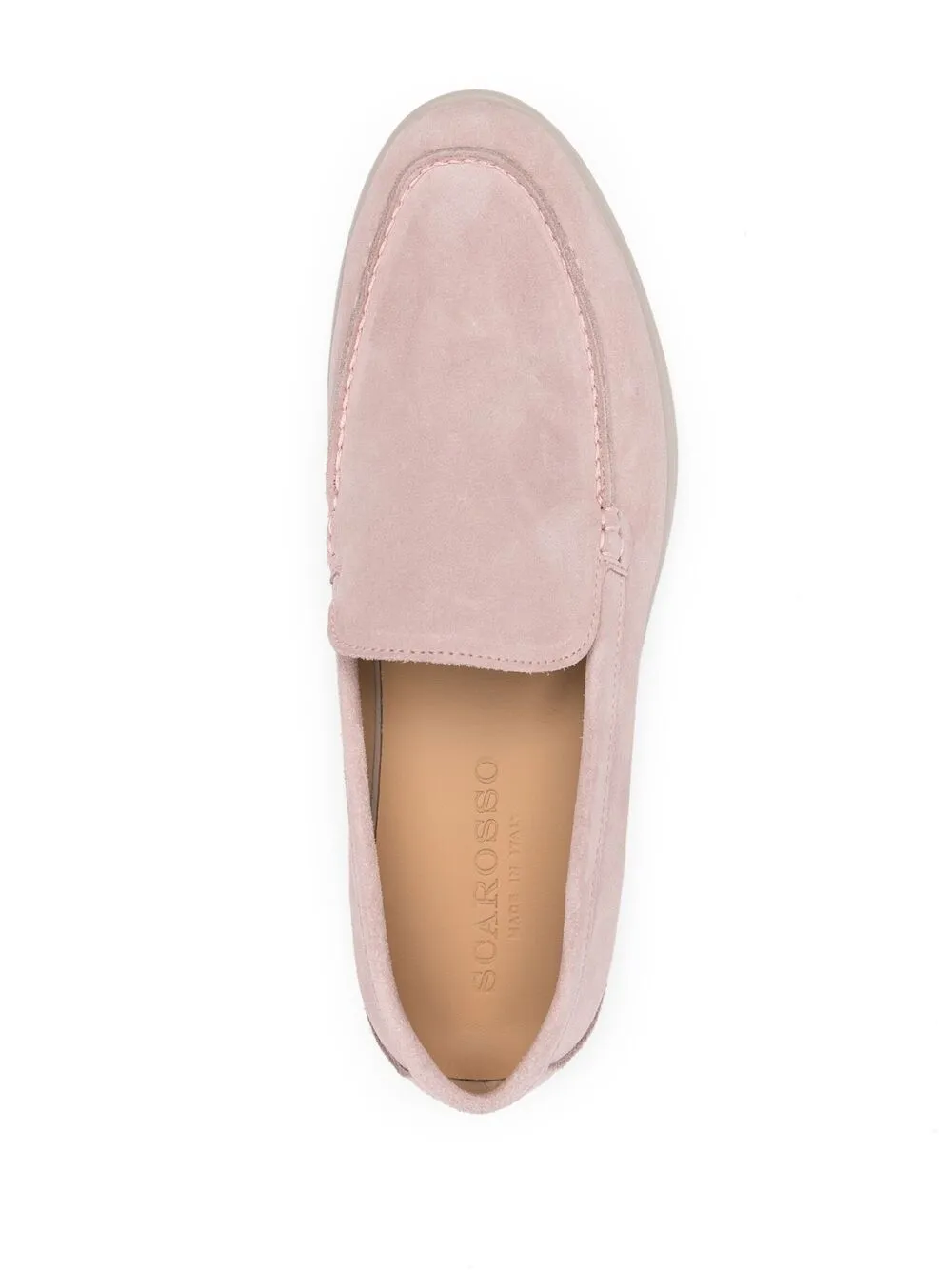 Pink suede/leather Ludovica round-toe loafers from Scarosso featuring slip-on style, round toe, branded insole and flat rubber sole.