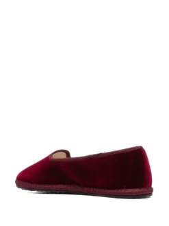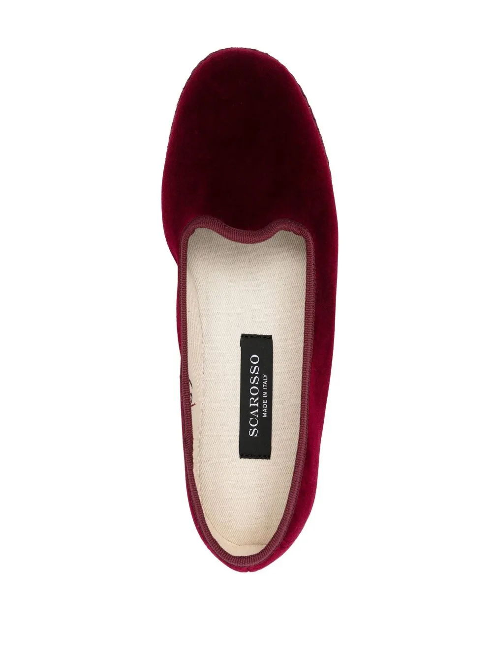 Valentina slip-on slippers from Scarosso featuring dark red, round toe, slip-on style and flat sole.