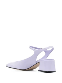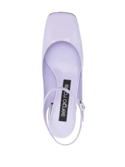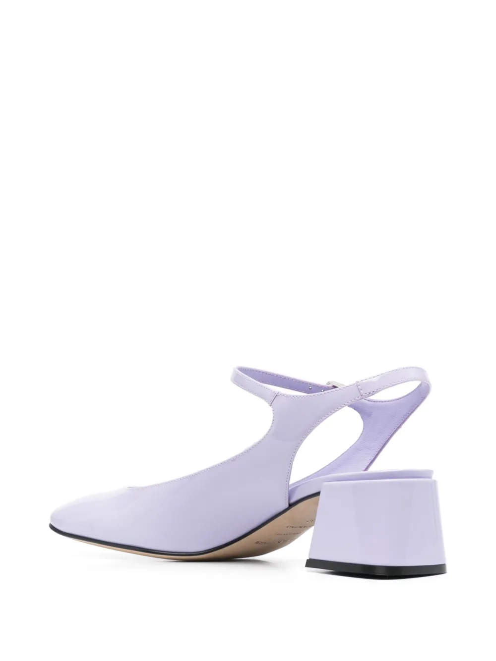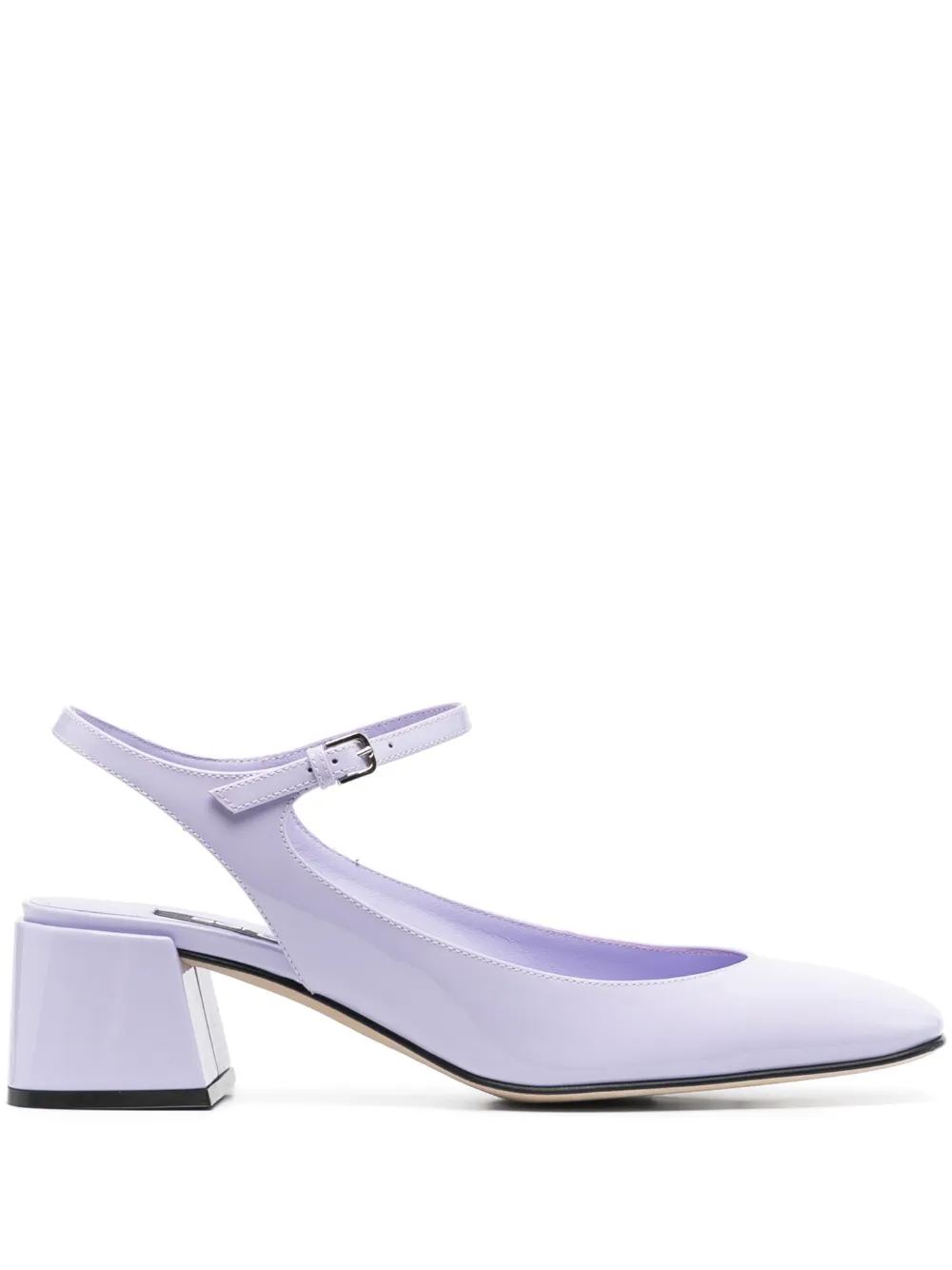 55mm patent-finish leather pumps from SERGIO ROSSI featuring lilac purple, calf leather, patent finish, square toe, buckle-fastening ankle strap, block heel, branded leather insole and leather outsole.