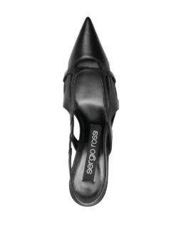 Aracne 65mm leather slingback pumps from SERGIO ROSSI featuring black, calf leather, crossover strap detail, cut-out detailing, pointed toe, slingback strap, low heel and 65mm heel.