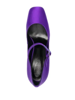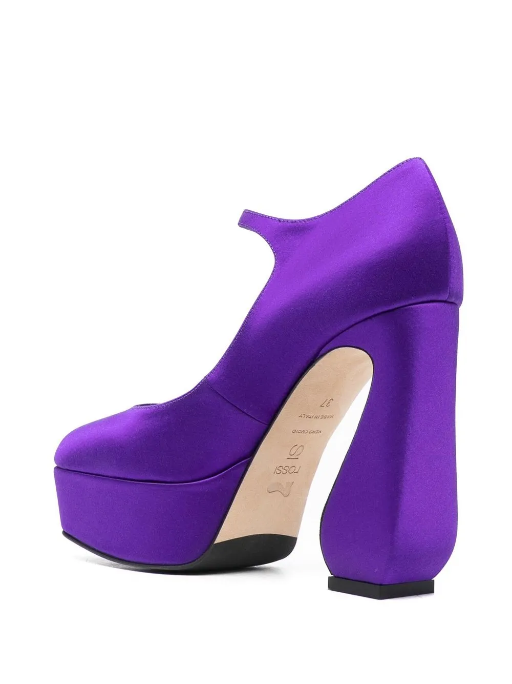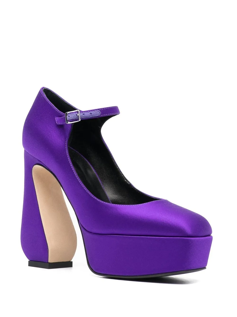 electric purple calf leather blend satin trim platform sole square toe buckle-fastening ankle strap 40mm branded leather insole 130mm high sculpted heel