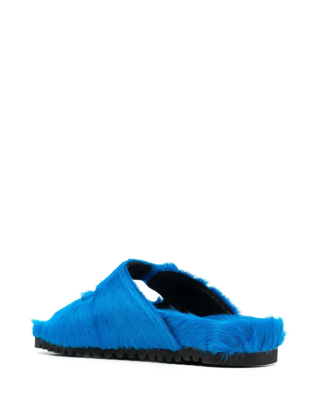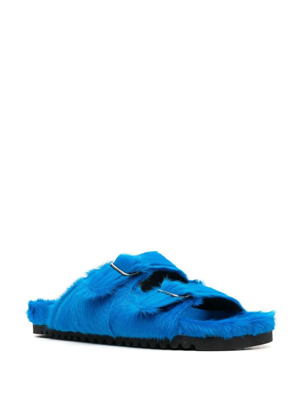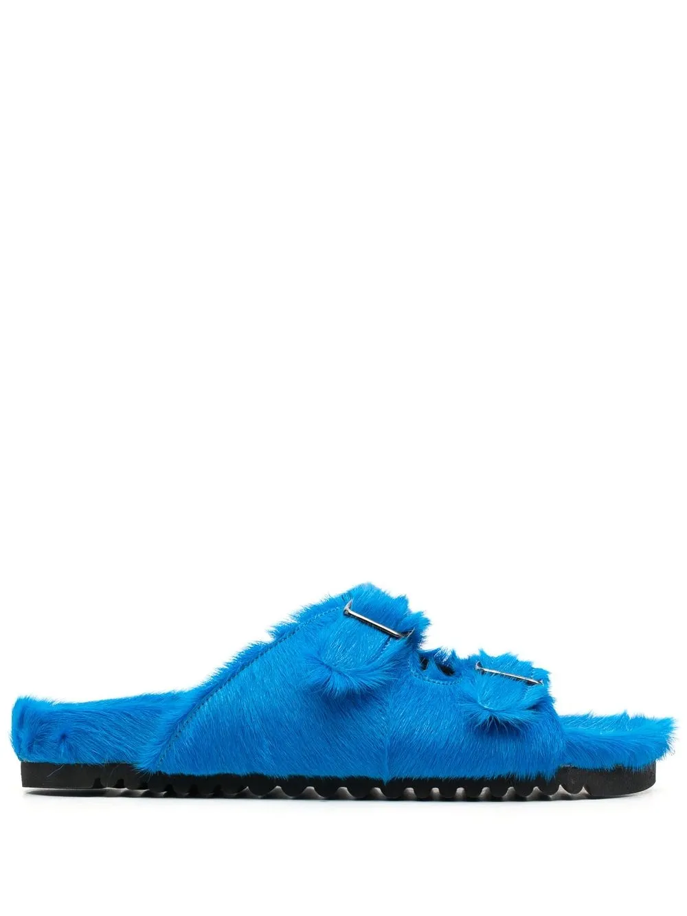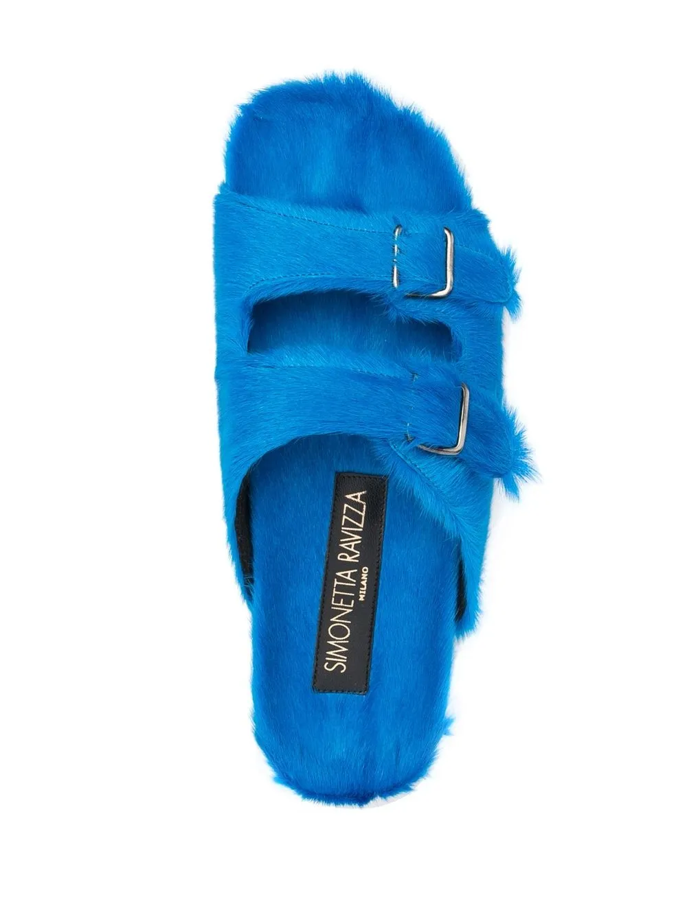buckled-up slides from SIMONETTA RAVIZZA featuring alice blue, slip-on style, adjustable fit, open toe, silver-tone buckle fastening, branded insole and ridged rubber sole.
