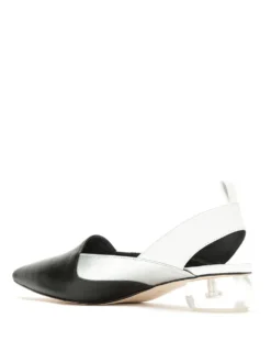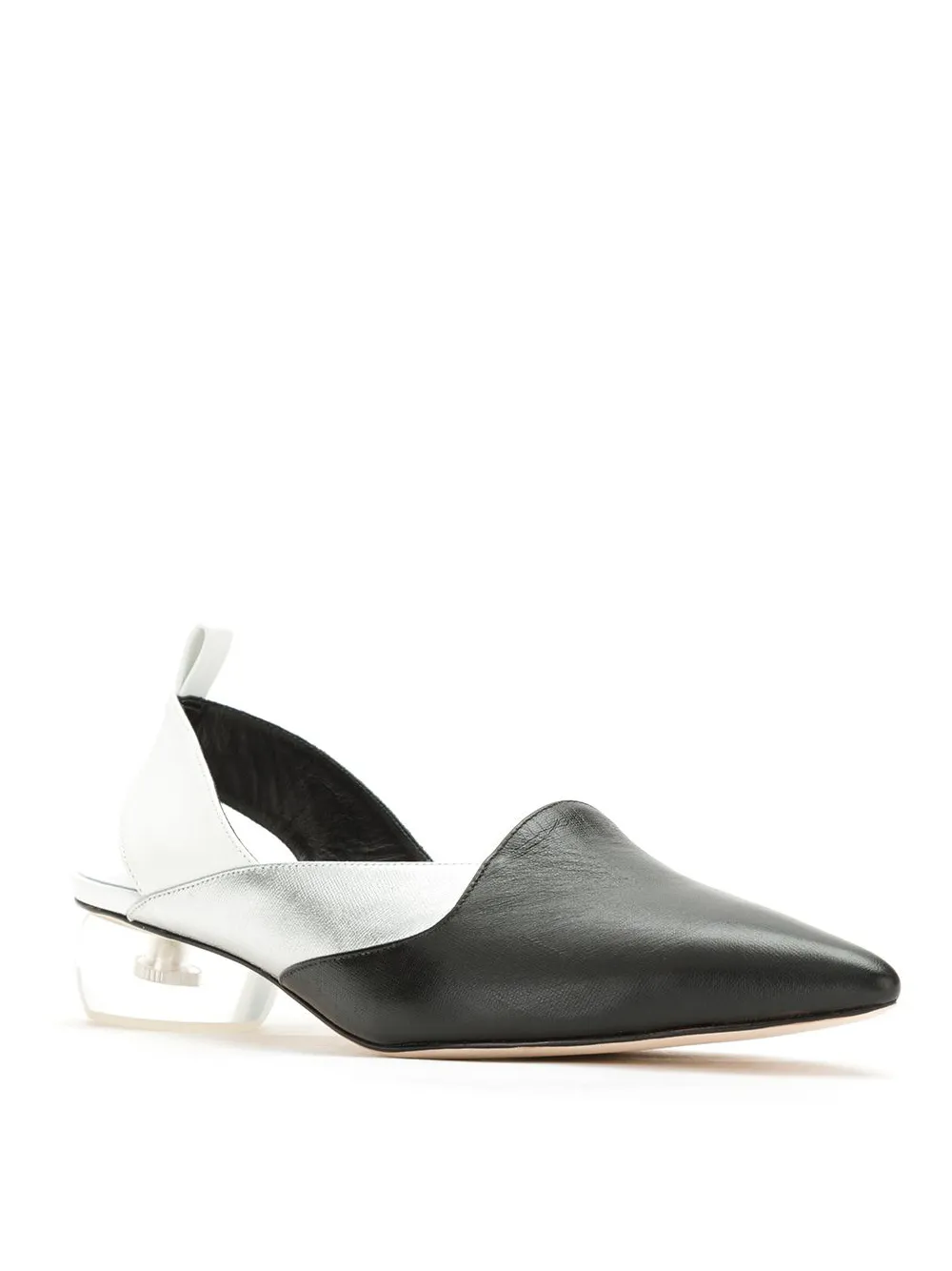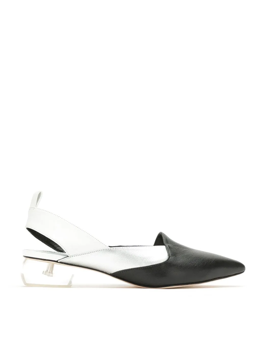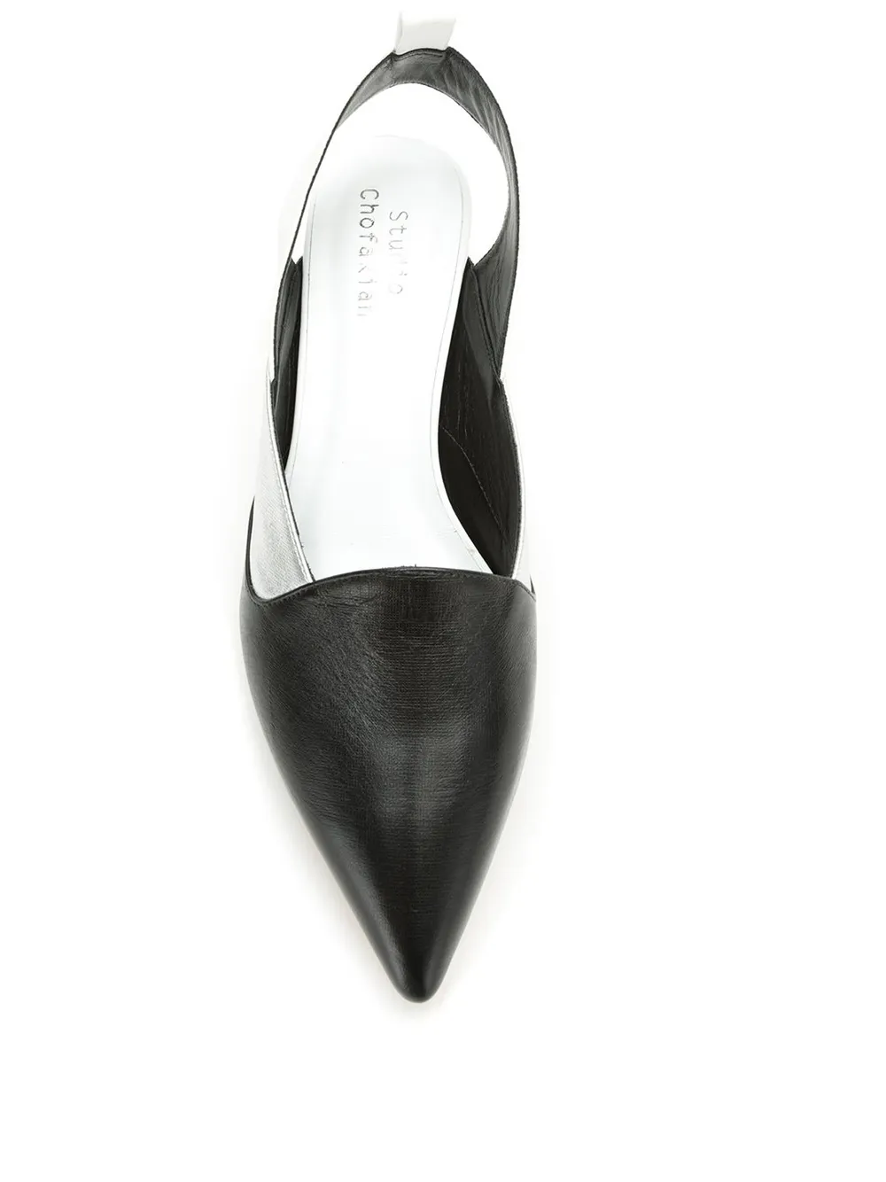 Black leather pointed toe ballerinas from STUDIO CHOFAKIAN featuring transparent heels.