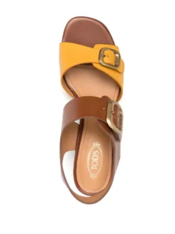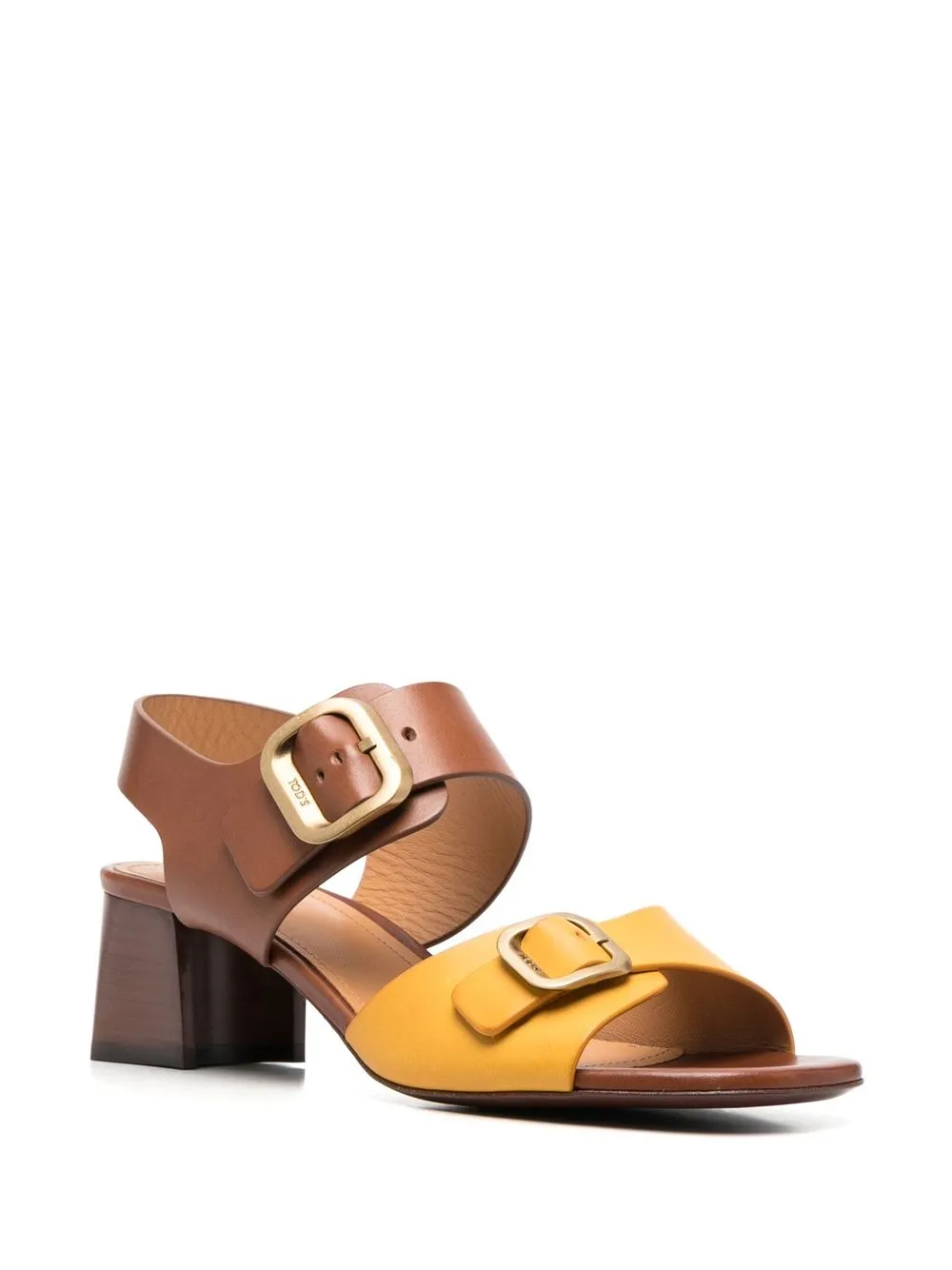 buckle-strap leather sandals from TOD’S featuring orange, brown, leather, decorative buckle detail, side buckle fastening, slingback strap, mid heel, branded insole and 55mm heel.