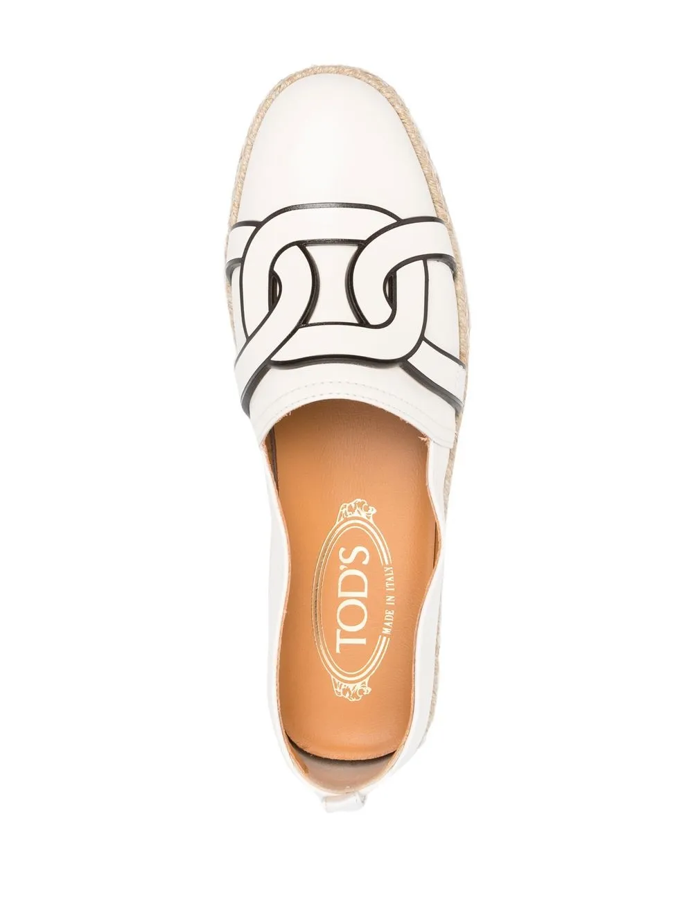 In a panelled design that mixes leather and raffia, these espadrilles from Tod’s boast a chain-link print seen throughout the label’s SS23 collection.