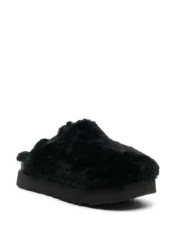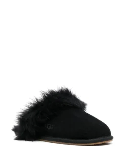 Scuffette II fur-trimmed slippers from UGG featuring light blue, lambs wool, round toe, shearling lining, debossed logo to the side, round toe, branded insole and rubber outsole.