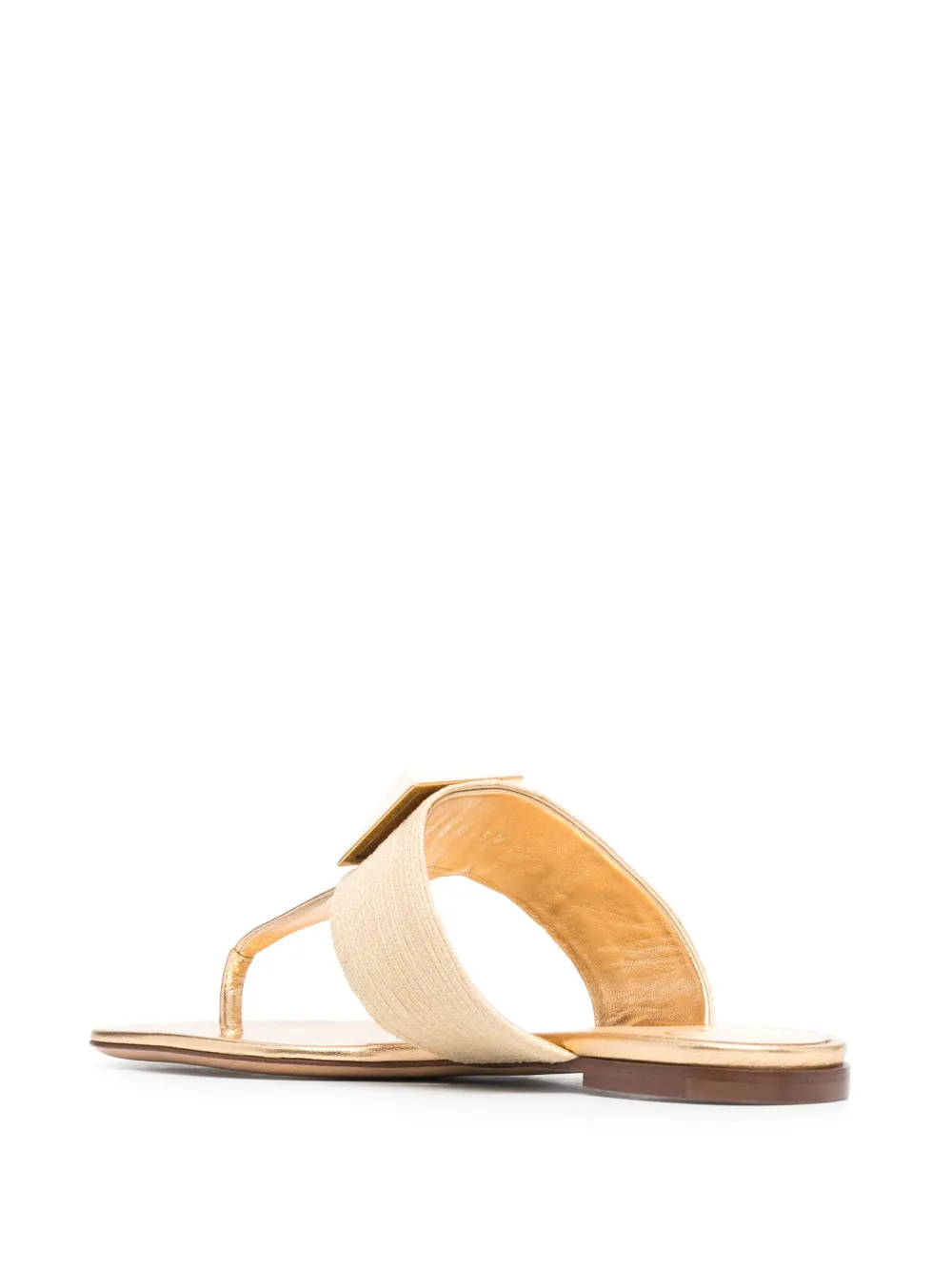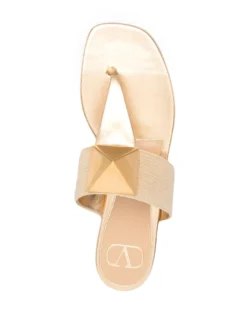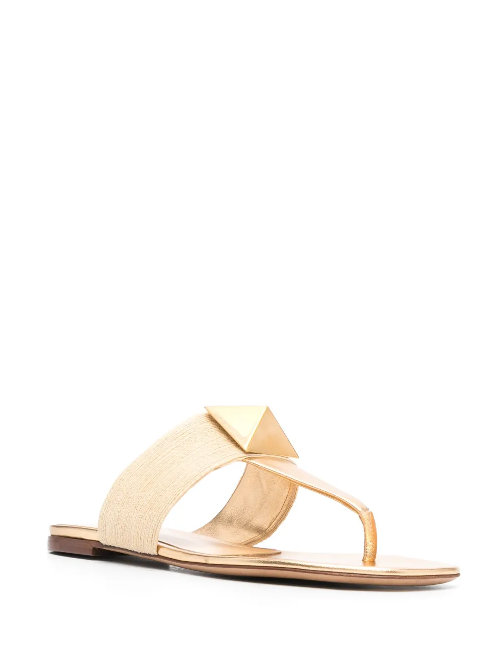 Valentino Garavani spotlights its maxi stud embellishment with these sandals – the hardware is an exaggerated take on the brand’s signature Rockstud. They’re crafted from metallic leather with a thick woven front strap.