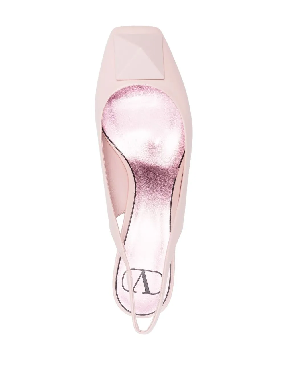 A larger iteration of Valentino Garavani’s iconic Rockstud, the Roman Stud was first introduced in 2020. The stud features as a tonal hue on these blush pink leather pumps.