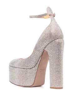Valentino Garavani’s AW22 footwear collection is peppered with towering heels that speak to the house’s eye-catching aesthetic. Case in point: these glittering rhinestone pumps stand out with their platform sole whilst the VLogo Signature buckle ankle strap adds an iconic edge.