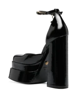 Versace’s Medusa Aevitas pumps are designed to take outfits to new heights. Set atop a double platform and a towering block heel, this patent leather iteration is finished with a Medusa charm and a row of shimmering rhinestones for statement appeal.